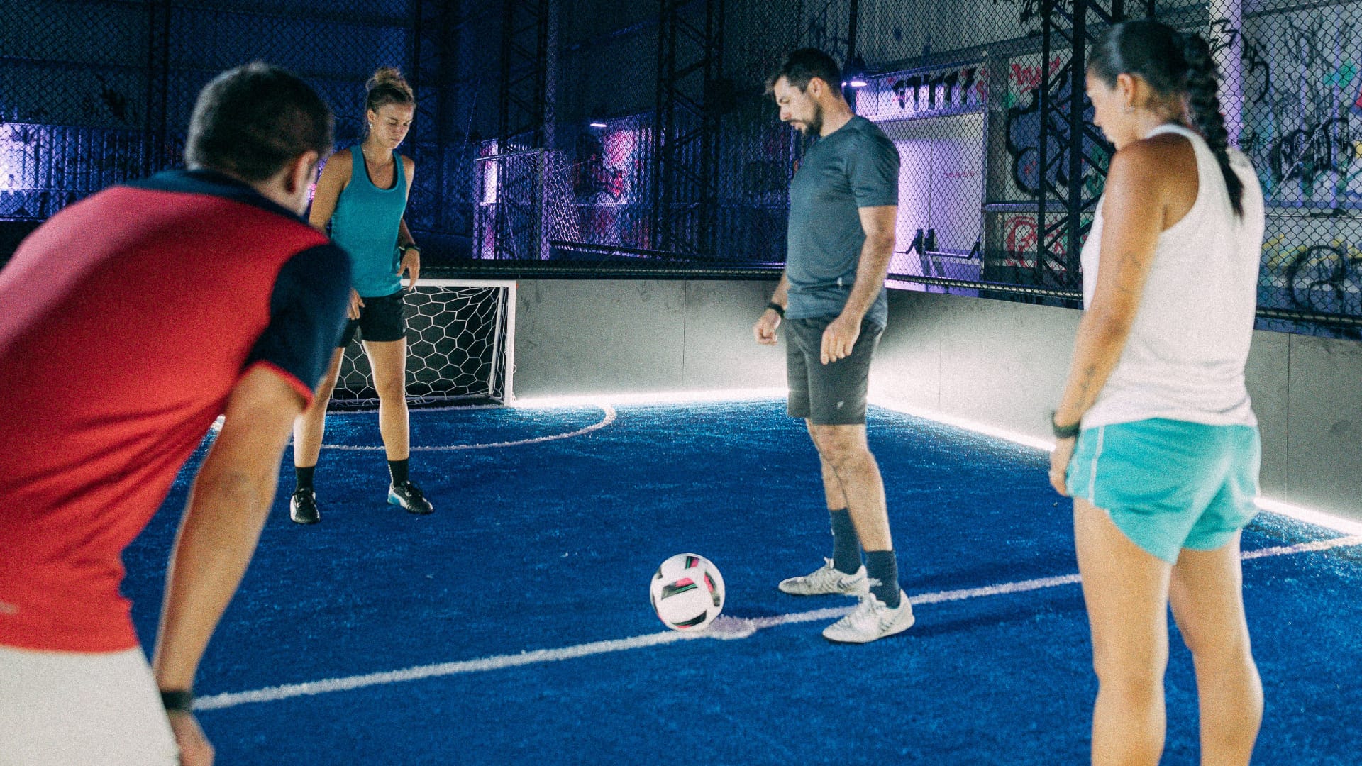 Nada como un picado entre amigos o un desafío en nuestra cancha de fútbol rápido, donde las paredes no solo evitan que la pelota salga, sino que, bien utilizadas, permiten generar pases y crear situaciones de gol. Además, nuestro césped de última generación amortigua cada paso, brindando una sensación más cómoda al pisar, sin necesidad de caucho ni arena.